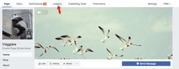 After setting up your boosted posts, you can see its performance on your Facebook page. Navigate to your Facebook page and click on “Insights.”