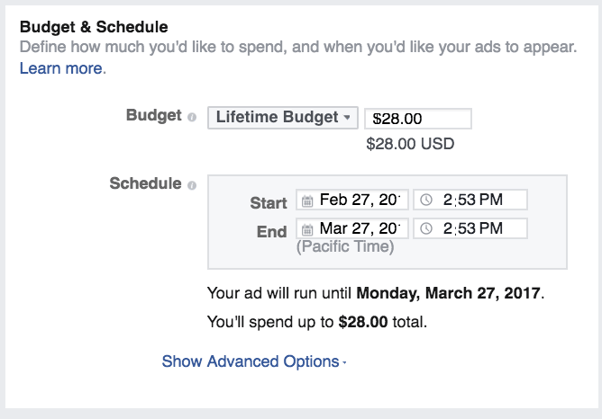 Then, you can set a schedule for the length of time your ad will run. For instance, if you want to advertise a promotion, you can set your ad to run during the period of this promotion.