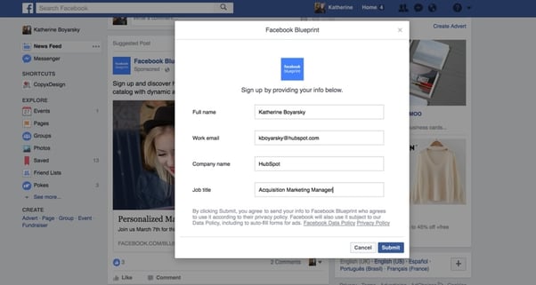 You’ll see that the details required here apart from the name are work email, company name, and job title. These details required alone has shown that its a B2B ad. As a B2B company, the details you need from your leads might be different from what a B2C company needs.