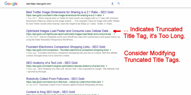 This is important because if your title tag (which some people copied from the page title) is more than 70 characters, it’ll be truncated in the search results.