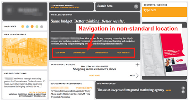 If your website is easily navigable, then you can expect to see high conversions. Web navigation is a requirement for boosting your search ranking. More importantly, put your navigation menu where users can easily find them, not in odd locations like this one:
