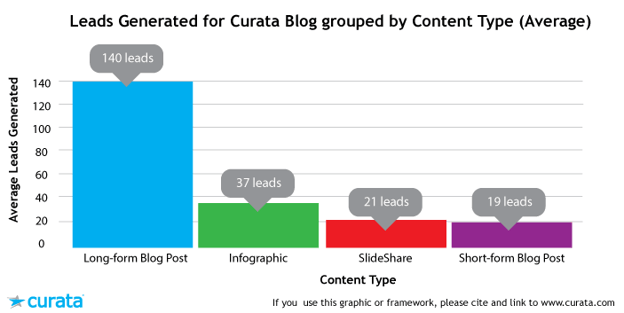 A study by Curata revealed that long-form content generated 140 leads more than SlideShare presentation, infographic, and short-form content combined.