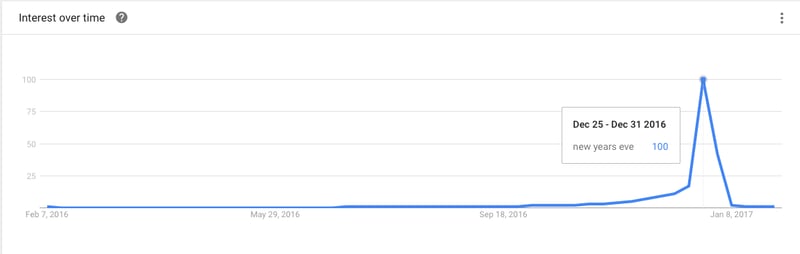 Using Google Trends, you can see what kinds of search volume appears for holiday- or event-specific keywords such as “new years eve” that can provide you with some ideas. Wherever you see the spike begin to rise is when you should target your marketing plans to get the most from your campaigns.