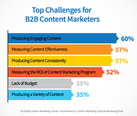 This can pose a challenge to ensure quality content on thousands of your website pages. Whether it’s creating new engaging content or updating your already-indexed pages, it’s quite difficult. That’s why 60% of B2B marketers struggle with it, according to the Content Marketing Institute.