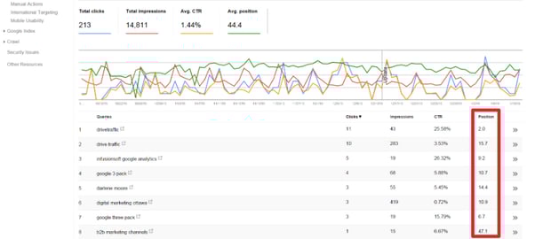 iv). Search results page positions: These are the positions your pages occupy for some important keywords. Check keywords positions on your Google Search Console account.