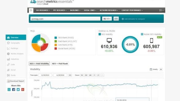 Searchmetrics provides tools that help you improve your mobile and local visibility on search engines. You also get PPC insights which you can apply to your SEO strategy.