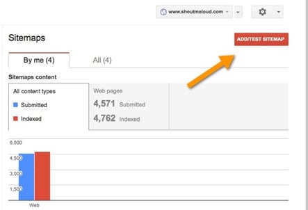 Click on the arrow and on the “Add/test sitemap” button.