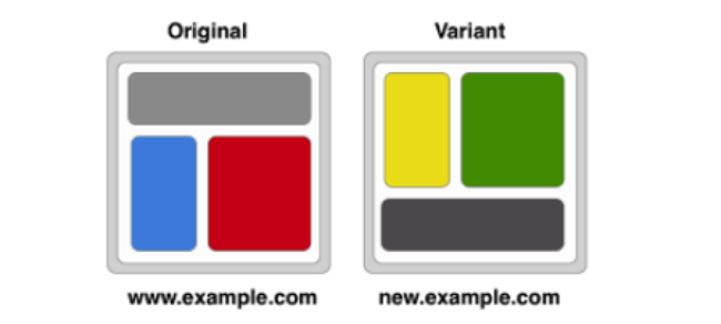 Example: The above example is an A/B test of a web page (A and B). Variant A contains a blue photo while Variant B contains a red photo.