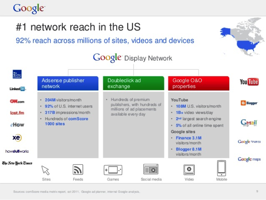 The display network amounts to over 1 million websites, smartphone apps, videos, blogs, and other online destinations that signed up to show these ads.