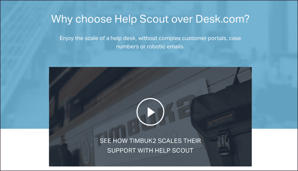 Look at this landing page where Help Scout uses a video to make comparisons between its service and that of Desk.com: