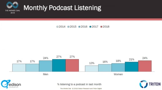 A study by Edison Research and Triton Digital reveals that 26% of Americans listen to podcasts in 2018. That’s up from 24% in 2017. When you consider it, 26% of Americans are about 73 million people.