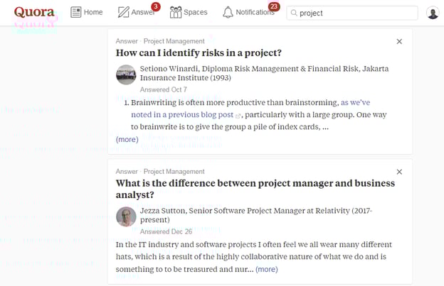 Quora is such a powerful customer research platform. If you’re in the project management sector, for example, take a look at some pressing questions that your audience is asking.