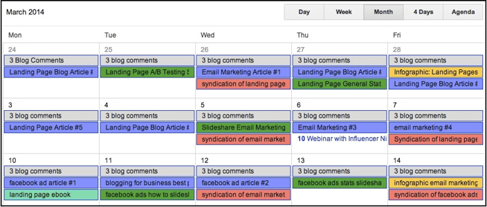 A typical content calendar shows the topics to be written, the date to be published, the goal of that content, and much more. It looks similar to this: