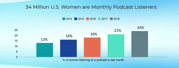 About 34 million US women are listening to podcasts in a span of 5 years.