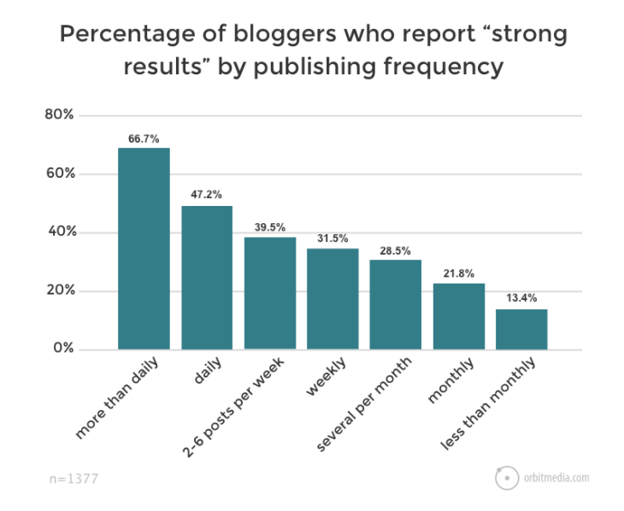 However, blogging frequency and content quality matter. 66.7% of businesses that publish content consistently through blogging (whether in-house or guest post) are seeing better results.