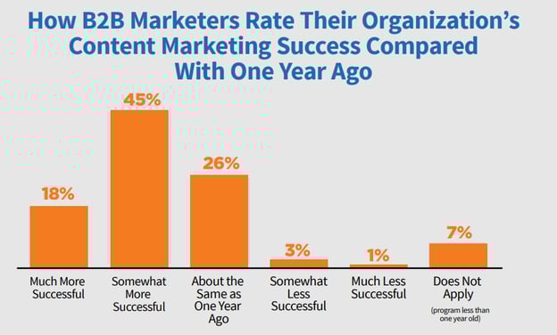 When compared to last year, a subsequent study by the same company showed that 45% of B2B marketers rate their content marketing efforts to be successful (based on how they achieved their organization’s target goals).