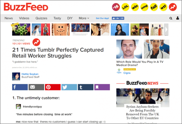 Buzzfeed uses content curation to attract a lot of direct traffic to their website. They simply compile other people’s best content and link out to them.