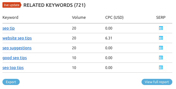 SEMrush will generate a list of targeted keywords that are semantically related to your seed keyword.
