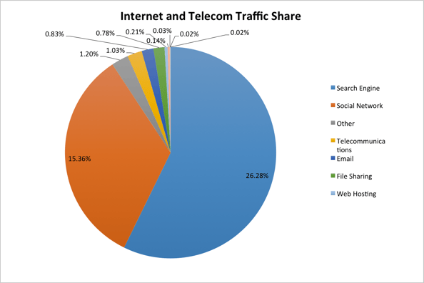 It’s always a good idea to group search engine and social media optimization together since they’re the primary channels you generate traffic from, according to the Internet and Telecom Traffic Share: