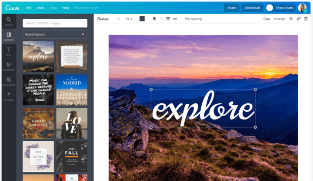 Canva is an online design tool that will help you make beautiful designs without being a professional designer. Canva has 65,000 design templates that you can choose from.