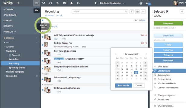 Wrike is designed for large projects that will run for a long time. It has some nice management features like Gantt charts and it also has an analytics tab which you can use to monitor your team’s efficiency.