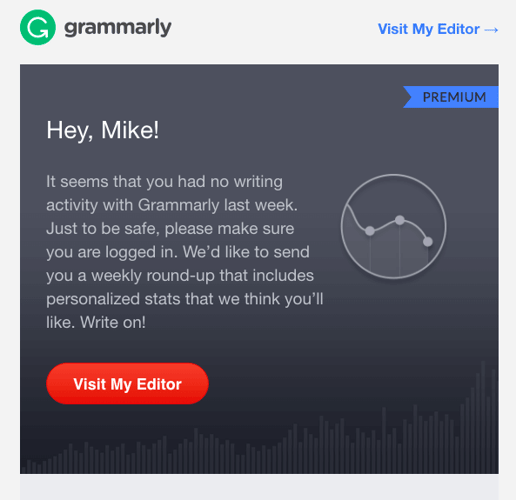 Grammarly sends a highly engaging email to its inactive users with a CTA that takes the users to the editor. Take a look: