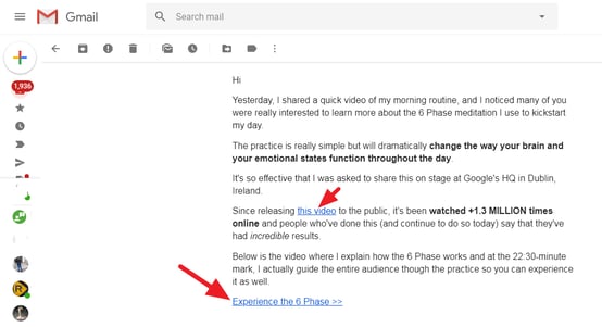 In addition to being persuasive, the email also has clear and relevant links that prompt me to click. He also added a video below the email.
