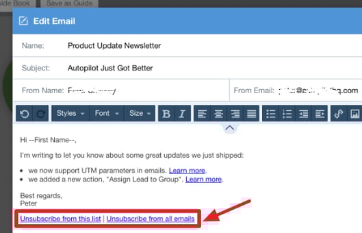 As counter-intuitive as it sounds, this will save your email marketing campaigns in the long run. When a user has a hard time finding out how to remove their email address from your list, they simply add you to spam.