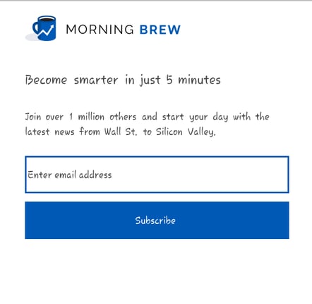 Take a look below at Morning Brew offering their visitors daily updates in exchange for their email addresses.